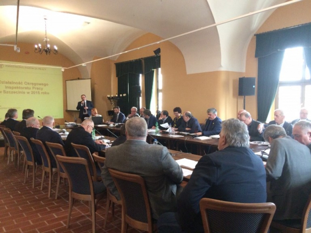 W dalszej części posiedzenia pan Marian Szyszko Okręgowy Inspektor Pracy w Szczecinie przedstawił Sprawozdanie Okręgowego Inspektora Pracy z działalności Okręgowego Inspektoratu Pracy w Szczecinie w 2015 roku.