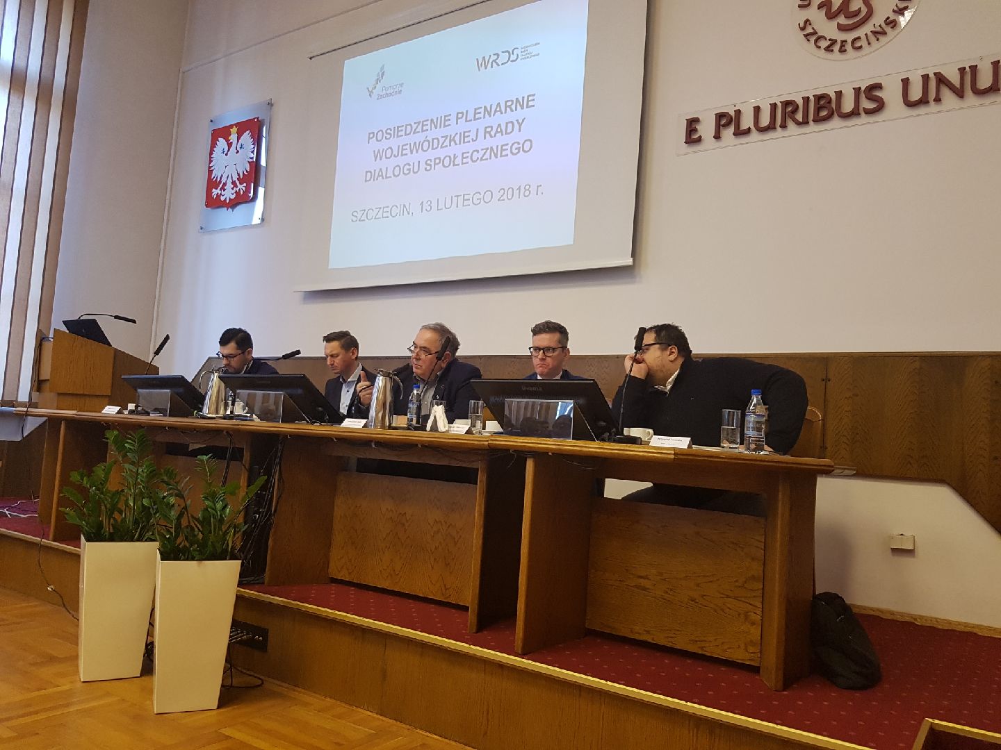 Sytuacja w Morskiej Stoczni Remontowej „Gryfia” S.A. oraz wielkość środków przeznaczonych na roboty publiczne i prace interwencyjne w województwie zachodniopomorskim były tematami, które zdominowały I posiedzenia Wojewódzkiej Rady Dialogu Społecznego w 2018 roku, które  odbyło się 13 lutego w Auli Rektoratu Uniwersytetu Szczecińskiego. Sytuacja w Morskiej Stoczni Remontowej „Gryfia” S.A. oraz wielkość środków przeznaczonych na roboty publiczne i prace interwencyjne w województwie zachodniopomorskim były tematami, które zdominowały I posiedzenia Wojewódzkiej Rady Dialogu Społecznego w 2018 roku, które  odbyło się 13 lutego w Auli Rektoratu Uniwersytetu Szczecińskiego. Posiedzenie prowadził Wiceprzewodniczący WRDS Mieczysław Jurek a wśród zaproszonych gości byli między innymi: Andrzej Strzeboński Prezesa Zarządu Szczecińskiego Parku Przemysłowego, Marek Różalski Prezes Morskiej Stoczni Remontowej Gryfia S.A., Andrzej Przewoda Dyrektor Wojewódzkiego Urzędu Pracy w Szczecinie, Krzysztof Zaremba poseł na Sejm RP oraz pan Grzegorz Witkowski Podsekretarz Stanu w Ministerstwie Gospodarki Morskiej i Żeglugi Śródlądowej. Podczas posiedzenia Członkowie Rady podjęli uchwały w sprawie przyjęcia sprawozdania z działalności Wojewódzkiej Rady Dialogu Społecznego w Województwie Zachodniopomorskim za okres poprzedniej kadencji a także przyjęli plan i harmonogram działań Rady na 2018 rok. Podczas posiedzenia plenarnego podjęta została również uchwała w sprawie zmian w składzie  zespołu problemowego WRDS ds. przemysłu stoczniowego oraz przyjęto stanowisko w sprawie środków przyznanych na walkę